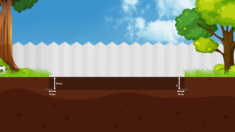 Heb je het gat opgemeten en afgetekend op de plek waar de trampoline moet komen? Mooi! Nu graaf je een platte kuil ter grootte van de afmetingen van de gekozen trampoline. Let op! Het is handig om het gat aan alle kanten een aantal centimeter groter te graven. Zo heb je wat speling wanneer je de wandconstructie moet plaatsen. Deze kan je later weer opvullen. Tevens is het essentieel dat deze kuil recht naar beneden lopende wanden heeft. De diepte van deze kuil dient op alle plekken 25 cm te zijn. Graaf vervolgens, op de plekken waar de poten komen te staan, een halve stoeptegel van 15 x 30 cm in de wand. Haal hiervoor wat grond uit de wand. Deze stoeptegel dient ter versteviging van het trampoline frame en weerhoudt het frame ervan om te gaan bewegen. Is je basiskuil kuil nu overal 25 cm diep? Top! Tijd voor stap 3
