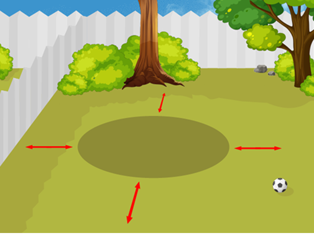 Aangezien we het hier over een inground trampoline hebben is het belangrijk om goed na te denken over de locatie waar je de trampoline gaat plaatsen. Want ja, je raad het al, verplaatsen na het ingraven zit er niet meer in. Voor veiligheidsredenen raden we je aan om minimaal 2 meter rondom de trampoline vrij te houden en minimaal 3 meter erboven. Mocht je deze ruimte nou niet hebben, dan adviseren wij om de ruimte om de trampoline te verzachten en eventuele obstakels te verwijderen. Heb je de locatie bepaald? Dan is de volgende stap het opmeten en aftekenen van het gat. Hanteer hiervoor de onderstaande afstanden. Maak het gat niet te klein en ook zeker niet te groot. Zo bewaar je namelijk de stevigheid van de grond.